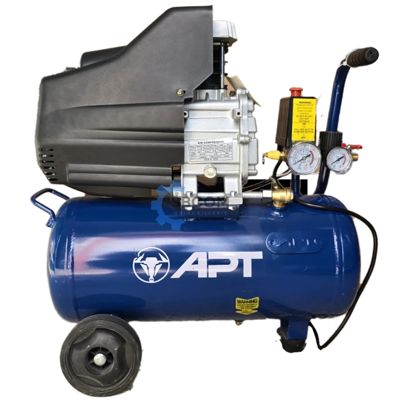 Le compresseur 50L 2HP APT est l’outil idéal pour les professionnels comme pour les bricoleurs avertis. Grâce à son moteur robuste de 2 chevaux et à son réservoir de 50 litres, il offre une capacité suffisante pour alimenter une large gamme d’outils pneumatiques. Ainsi, vous pouvez facilement utiliser des cloueuses, des pistolets à peinture ou des clés à choc sans perte de performance.