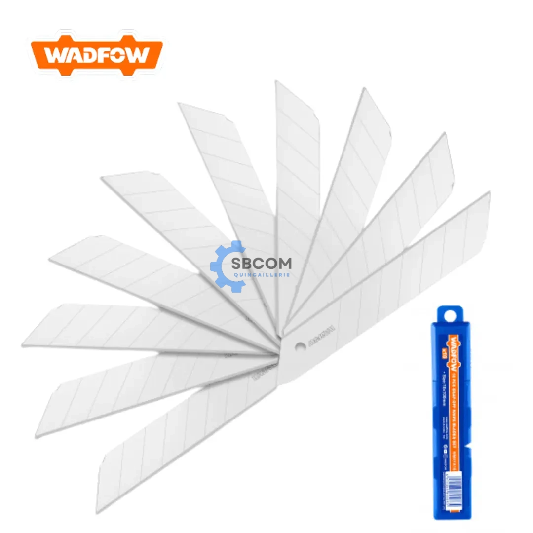 Jeu de 10 lames de cutter WADFOW en acier haute résistance. Disponibles en 61 mm, 80 mm et 100 mm, idéales pour découpes intensives et professionnelles.